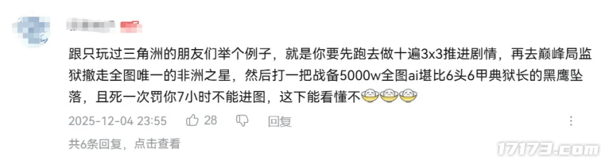 这个通关难度可以说是非常高,玩家不仅要高强度做完大量的主线支线任务,获得各种随机道具,还要面对全程锁头的AI,和各路PVP玩家的狙击,三角洲的3*3在他面前都只能算个萝莉。
