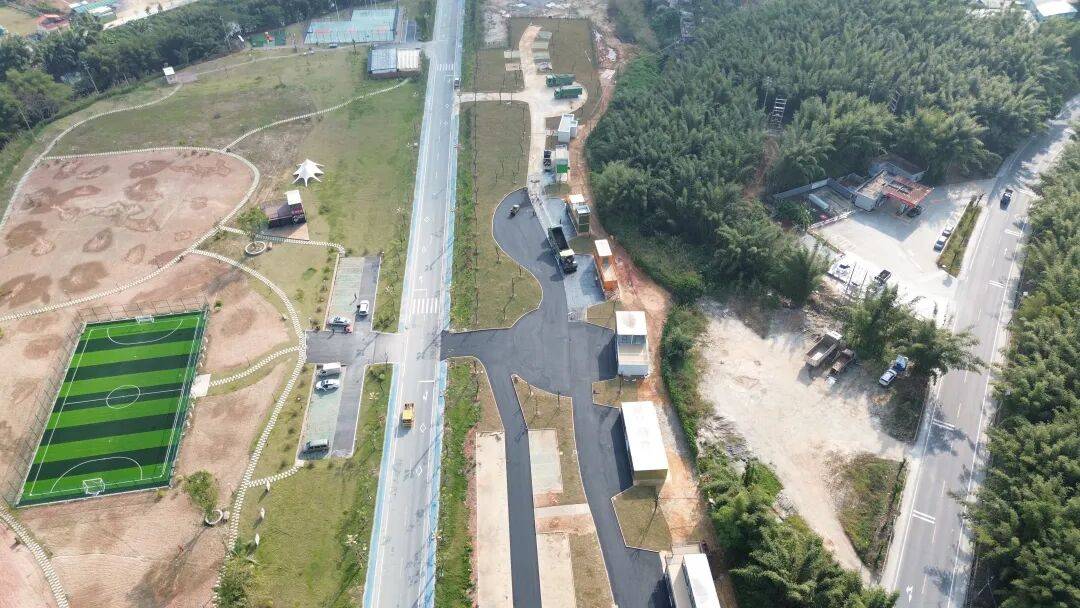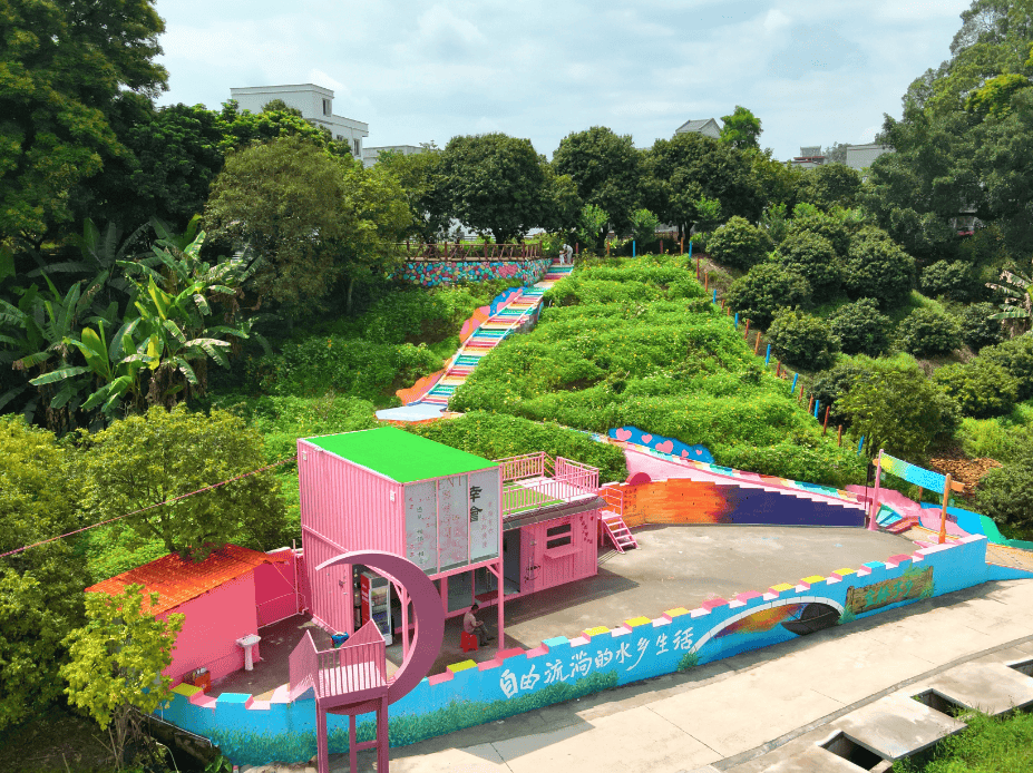 项目位于广宁县宾亨镇缤纷公园对面。该项目规划布局7栋商业集装箱建筑(含网红餐饮、办公驻点、农产品销售展厅),配套休闲庭院、生态停车场、公共厕所等公共设施,铺设透水混凝土道路约300米,种植乔木65棵、铺设草皮约7000平方米,规划建设40个公共停车位,设有新能源充电车位4个,商业街区占地1.7万平方米。该项目是央企中铁二十三局助力援建项目,是广宁县首个乡镇特色集装箱商业业态项目。