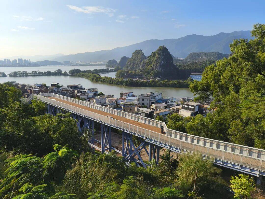 岩前象岗云道步道项目共1314米,以架空方式轻触山林,抬升观景视角,让七星岩风光尽收眼底;