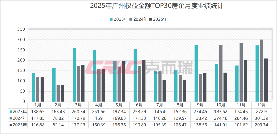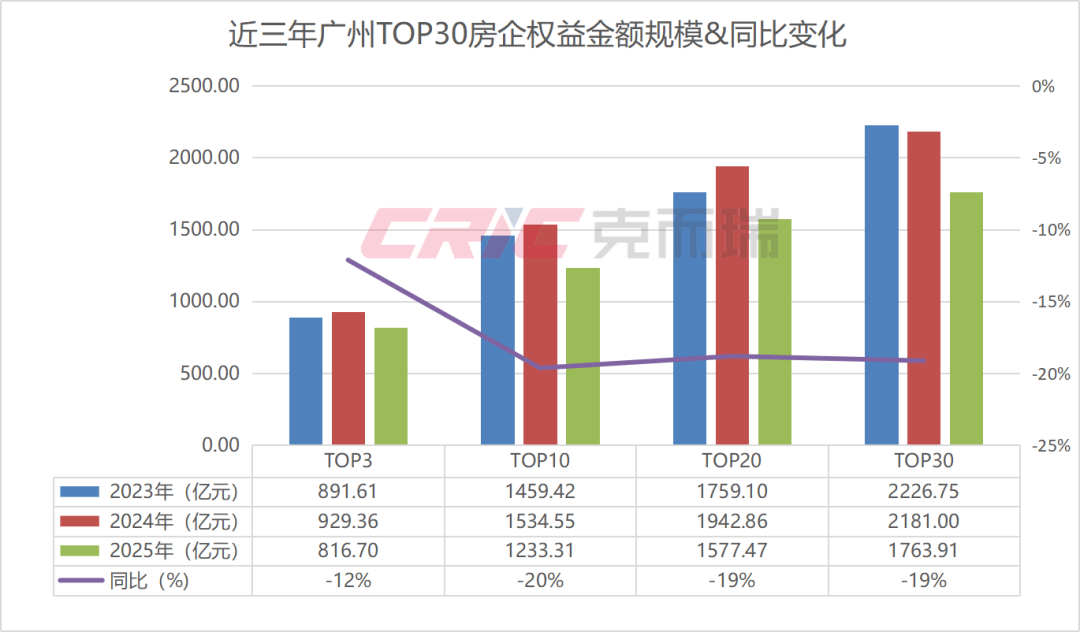 在入围门槛上,克而瑞数据监测显示,2025年广州权益金额TOP3梯队房企入围门槛