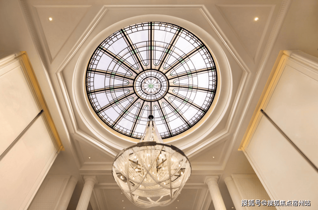 再仔细看细节,顶部香槟金色格栅塔冠以及壁柱采用香槟金和白调,将海派与现代之美生动演绎。