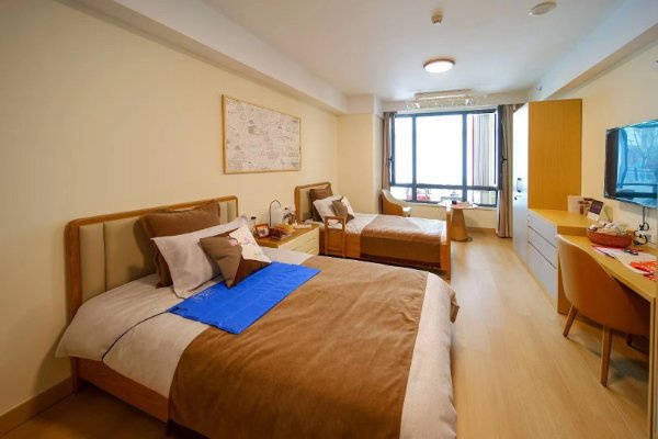 小高层建筑,房型30平米-60平米,单人间、标准间、多人间及套间,均配备独立卫生间、数字电视、冷暖空调、冰箱、电话、适老家具(衣柜、餐桌、木椅、床头柜等)、高级家居床或高级医疗床、电动床及床品。独立卫生间,高档卫浴洁身设备;24小时消防、安全监控系统,24小时无线紧急呼叫系统;全程无障碍设施、适老化家居配套设施。