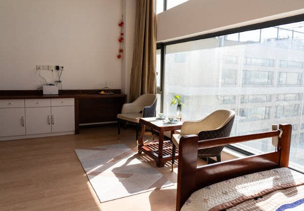 公寓的地址位于东城区东四七条19号院,地处老城核心区域,地上两层共计414.6平米,空间布局精巧雅致,共设置20张床位,为长者营造出静谧私密的居住环境。配套设施贴心实用,健身房可满足长者日常锻炼需求,理疗室则为身体调理提供专业场地,让养老生活兼顾舒适与健康。