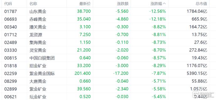 黄金及贵金属股暴跌,山东黄金、赤峰黄金跌超12%,潼关黄金、龙资源、集海资源、灵宝黄金跌超8%。沃什预期触发商品全线,金银再现史诗级洗盘。周一,现货黄金一度跌破4450美元/盎司,为1月8日以来新低;现货白银一度跌超15%失守72美元/盎司,仅三个交易日抹平一个月涨幅。花旗表示,黄金估值已达极端水平,下半年避险情绪消退将成最大利空。