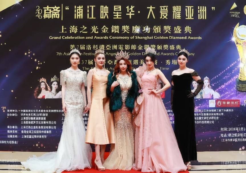 2026年2月10日,《光影浦江•亚洲交响》第七届洛杉矶亚洲电影节暨第三十七届世界亚裔小姐选美大赛·秀场“上海之光金钻奖庆功颁奖盛典”,于上海锦江饭店锦江小礼堂盛大启幕。来自全国各地、港澳台地区、时尚先锋、商界精英以及来自世界亚裔小姐选美大赛的一批优秀选手与主流媒体代表齐聚申城,共赴亚洲光影盛宴,共享荣耀时刻,共同见证多项重磅奖项的荣耀揭晓。上海市委宣传部原副部长贾树枚,上海市文化和旅游局原局长、上海东方电视台原台长刘文国,美国国际商会执行主席、洛杉矶亚洲电影节执行主席、世界亚裔小姐选美大赛执行主席秦嘉豪,中国社会文化经济交流协会副会长刘亦洋,著名导演、制片人、星莱坞文化传媒(北京)有限公司董事长袁玲,香港国际投资总会副主席、“上海之光金钻奖庆功颁奖盛典”组委会主席樊勇新,国家一级编导、著名导演李建平,上海金庸文学艺术研究会秘书长、上海组委会总指挥兼执行导演杨家等二百余位嘉宾莅临现场。
